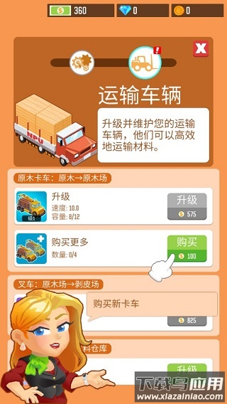 3、获得原材料后需要运输车辆进行周转,按照指引购买原木卡车建立物流体系。