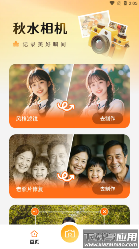 秋水相机官方版是一款功能强大的手机摄影软件,专为喜欢拍照和美化图片的用户设计。软件内置丰富的贴纸特效和精美滤镜模板,操作简单直观,即使是新手也能快速上手。无论是日常自拍、风景摄影还是人像修图,都能轻松实现多样化的图片风格制作。软件还提供智能抠图、老照片修复等实用功能,满足不同场景下的编辑需求。所有功能完全免费,无任何隐藏收费项目,喜欢拍照修图的朋友快来下载体验吧。