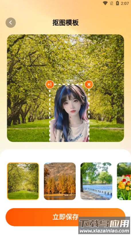 6、更换背景:提供四季风景等多种背景模板,一键替换照片背景;