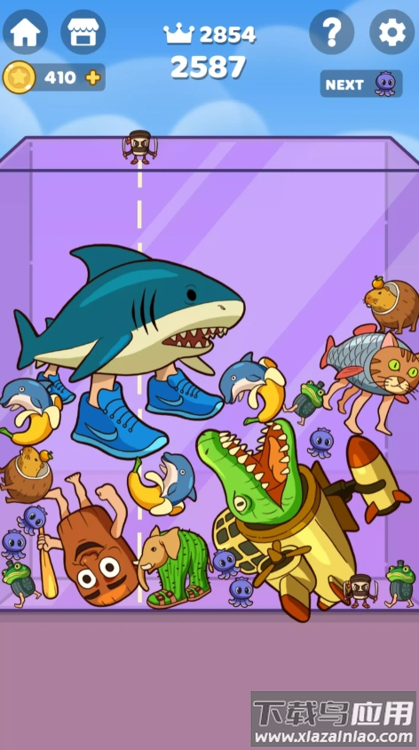1、基础玩法采用经典下落式合成机制,两个相同生物碰撞后进化成高级形态;