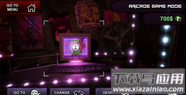 从左往右分别是:商店、服装、桌面摆设、开始游戏。开始游戏上方就是难易度