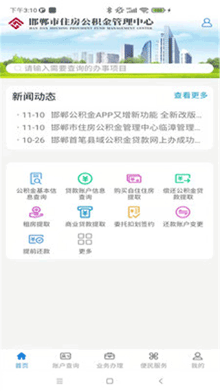 邯郸公积金app最新版是专为邯郸市民打造的公积金管理工具,由华信永道科技股份有限公司研发。这款软件整合了公积金查询、社保缴费、贷款办理等多项实用功能,用户通过手机即可实时掌握账户动态,办理各类业务无需奔波。其简洁的界面设计和流畅的操作体验,大幅提升了办事效率,特别适合工作繁忙的上班族使用。无论是查看缴存明细还是计算房贷额度,都能快速完成,想体验便捷服务的朋友快来下载鸟进行下载安装。