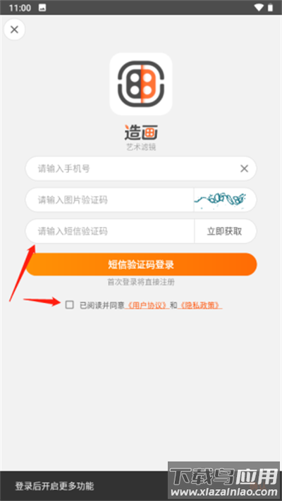 2.接着输入好手机号、验证码并通过验证后,点击登录即可。