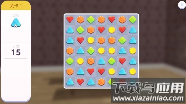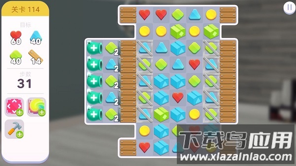 游戏采用红黄蓝绿橙五色几何块构成核心消除玩法,界面简洁清爽。相比同类游戏,本作关卡设计更友好:地图尺寸适中便于操作;2×2的盆栽障碍可批量消除;部分障碍物会集中分布在同一列。但某些特殊关卡如全图纸盒或复读机模式仍具挑战性,这类障碍会限制可操作空间,需优先消除周边方块创造机会。