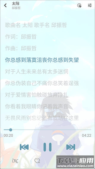 5、播放界面支持歌词显示、模式切换等操作。