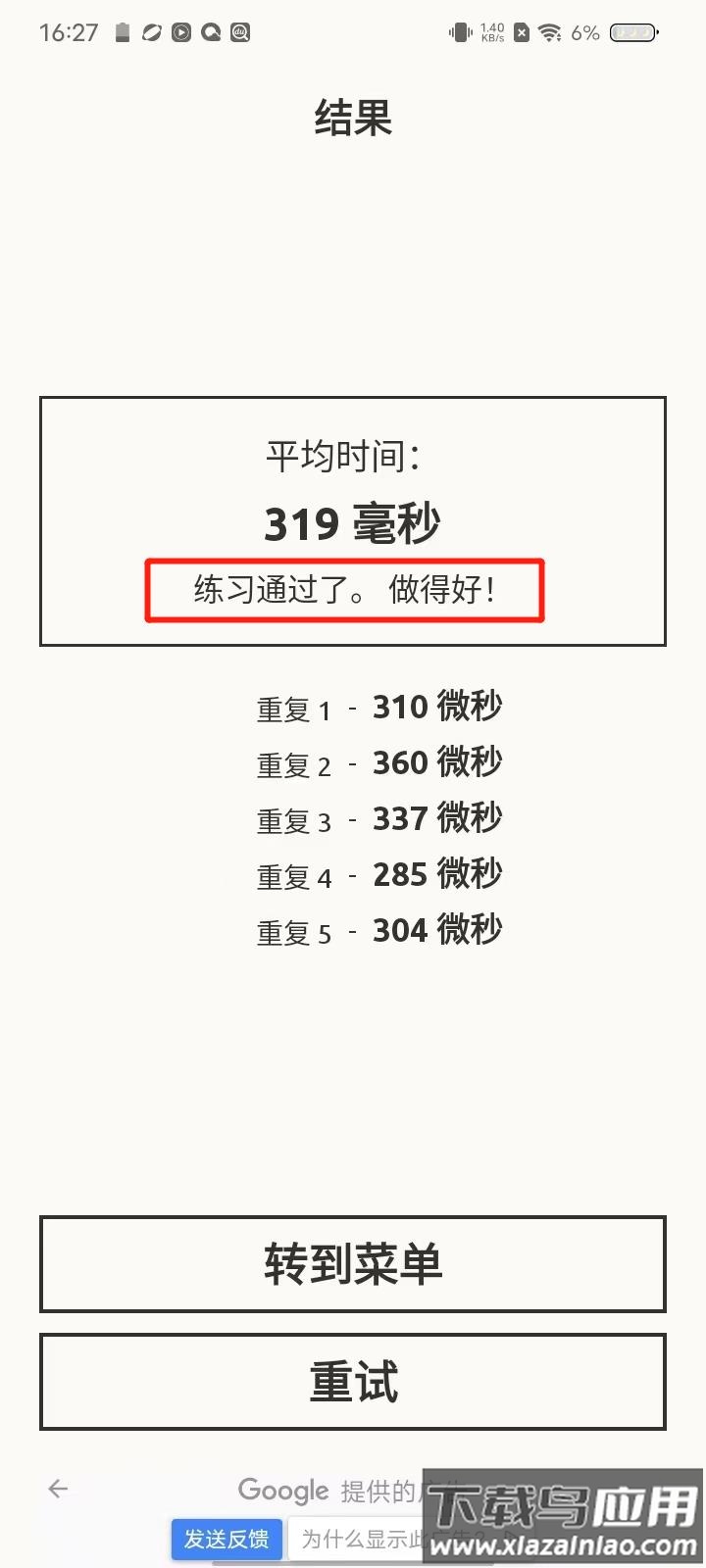 4、出现通关提示界面即表示当前练习成功;