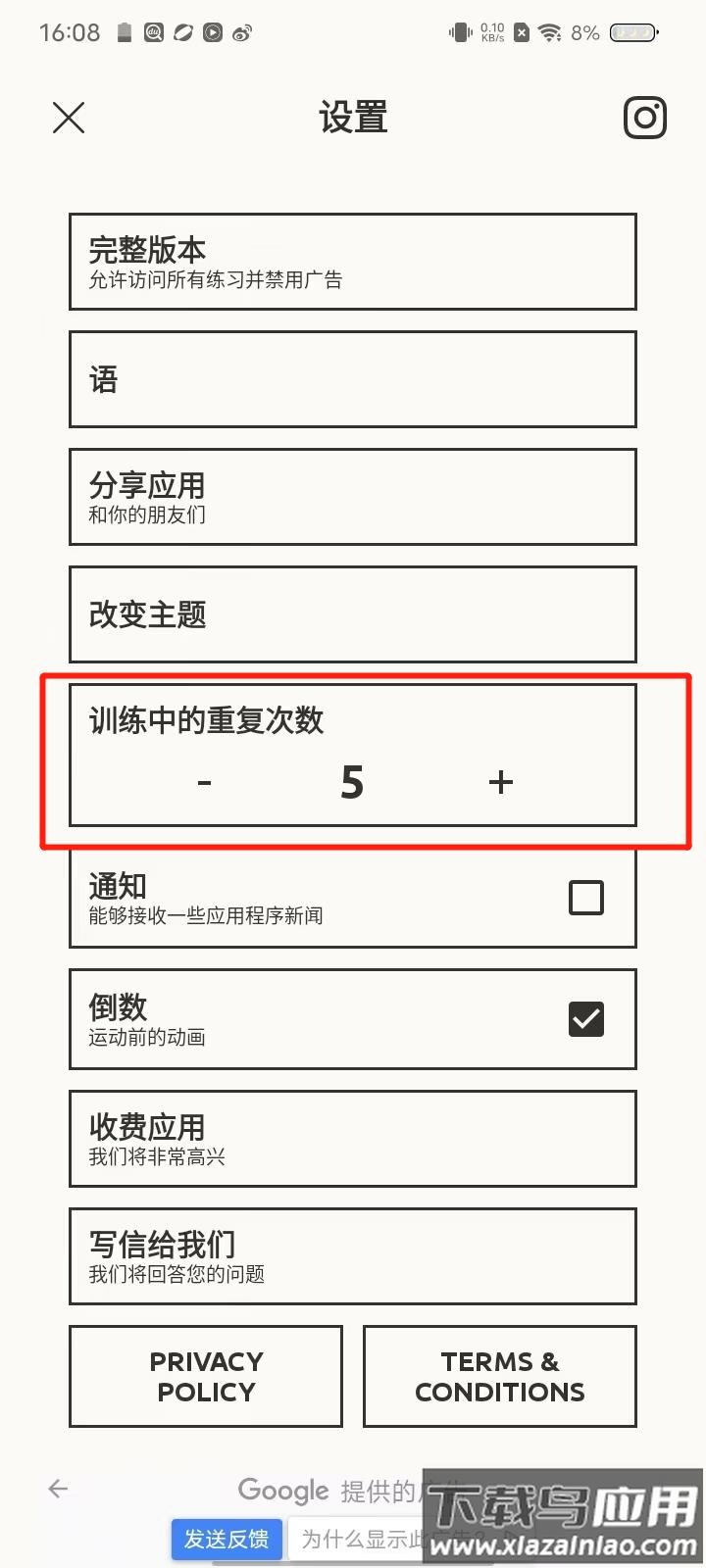 6、通过设置菜单可调整练习重复次数等参数。