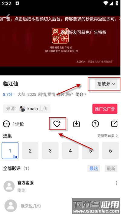 3、选择片源直接播放,遇到卡顿可切换其他播放线路