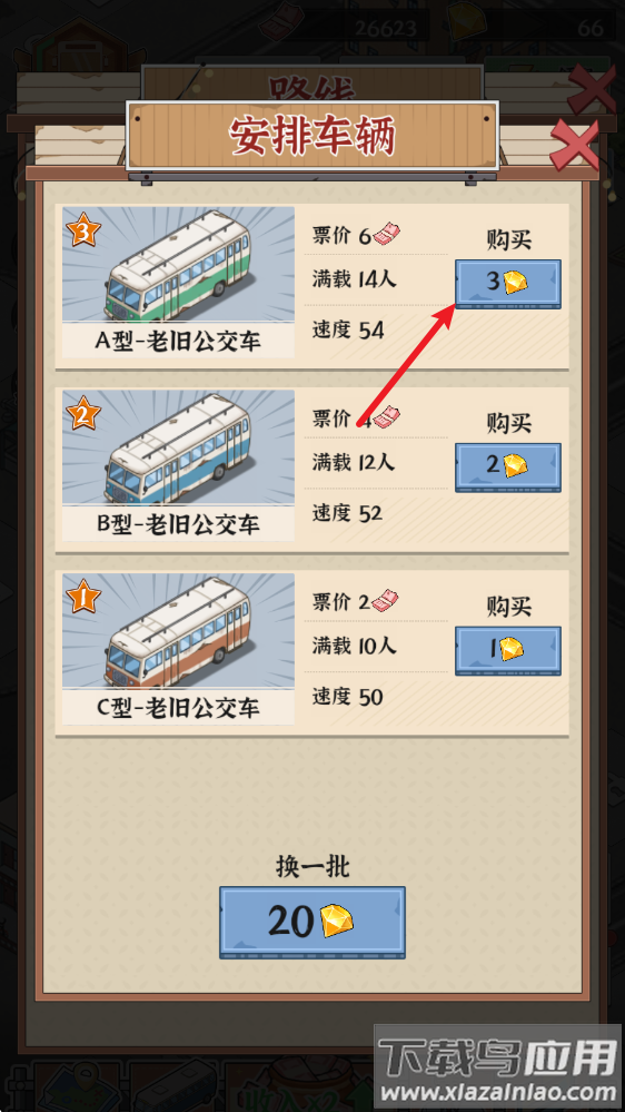 2. 从车库选择合适车辆,高级巴士可提升单程收益30%以上;