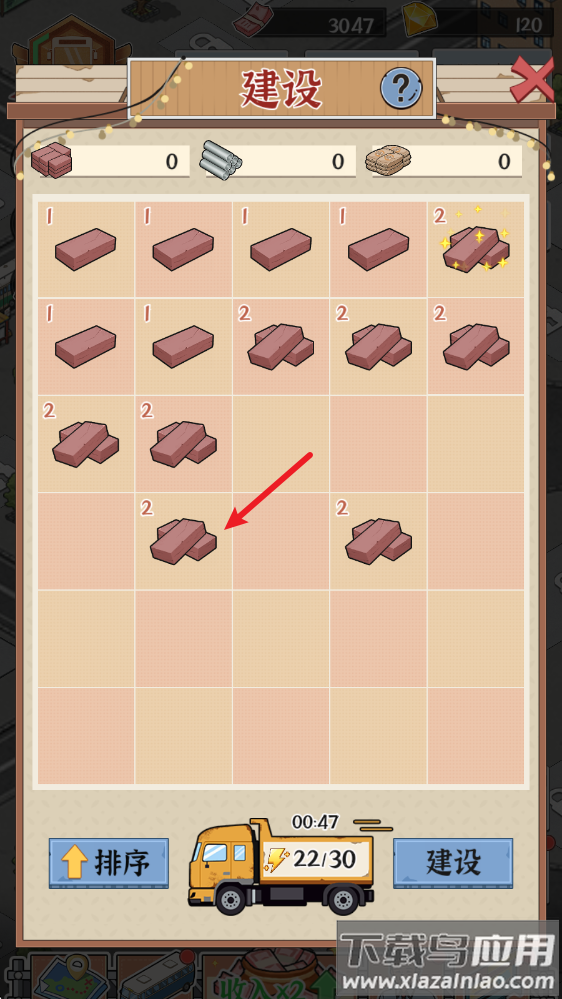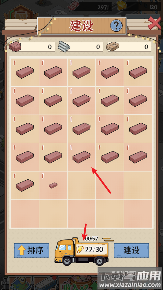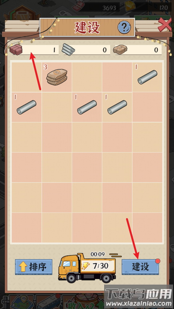 1. 通过建设按钮进入城建模式,消耗体力采集基础建材;
