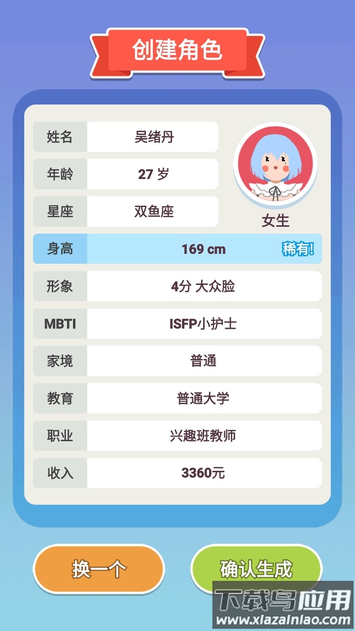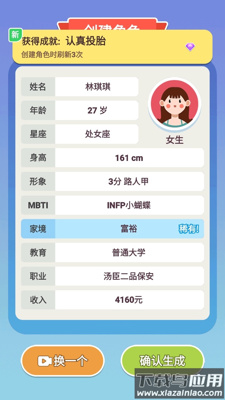 2.系统会随机生成角色形象,不满意可以重新生成;