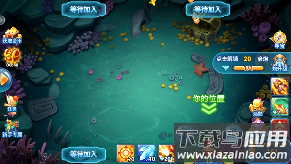 4、进入游戏如图,玩家需通过点击来控制炮台进行捕鱼;