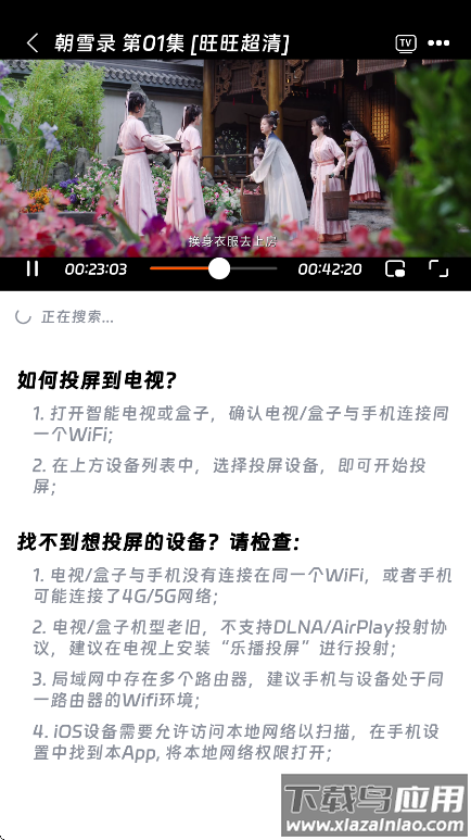 3.打开智能电视或盒子,确认电视/盒子与手机连接同一个WiFi;在上方设备列表中,选择投屏设备,即可开始投屏。