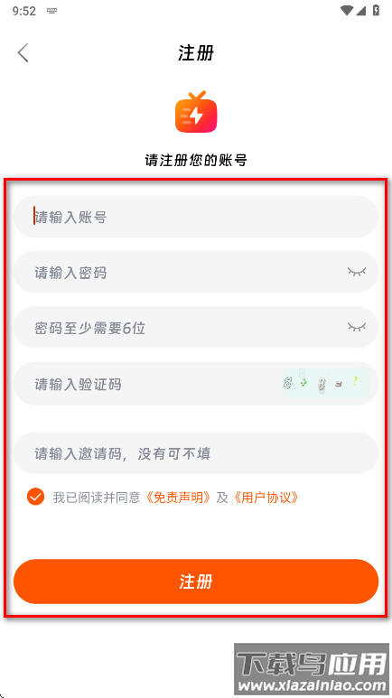 4.输入以下的信息,勾选我已阅读并同意《免责声明》及《用户协议》,然后点击注册。