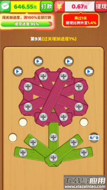 这款游戏将经典的拆卸玩法与益智解谜完美结合,每个关卡都需要玩家仔细观察螺丝布局,制定合理的拆除顺序。随着游戏进程,会出现更复杂的木板组合和特殊螺丝,考验玩家的空间思维能力。通关后不仅能获得成就感,还能领取游戏内各种实用奖励。