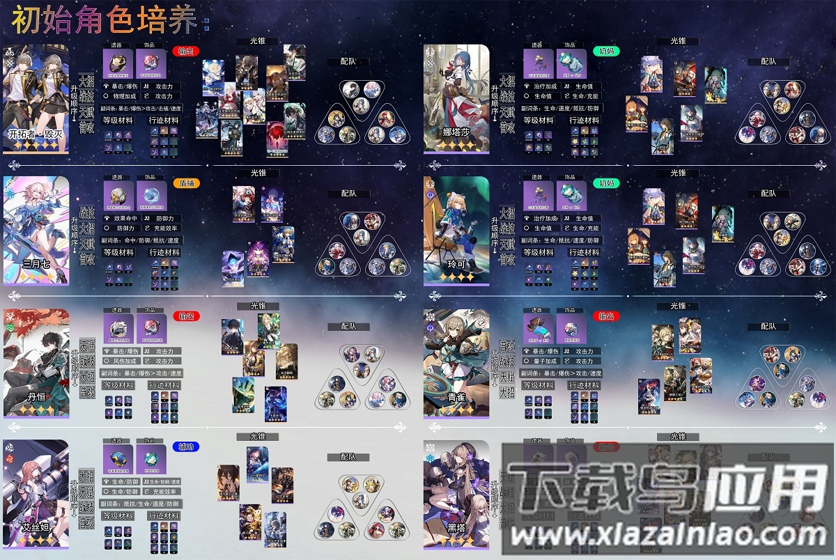 前期开拓力优先刷取角色晋升材料;均衡等级3前不要投入体力刷遗器,使用任务奖励的「快枪手」四件套过渡;星琼建议保留给限定五星角色,通用性强的辅助优先于输出。