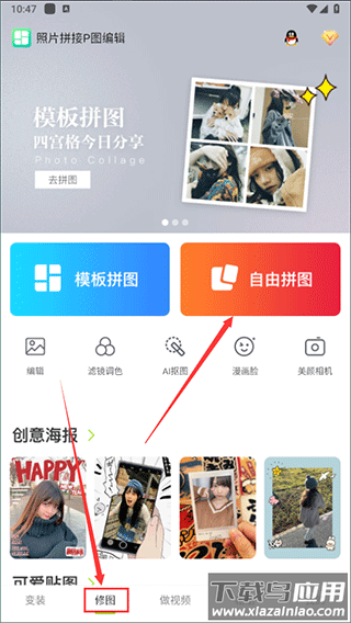1、下载安装后打开软件,点击底部【修图】按钮;