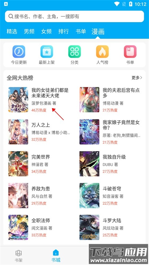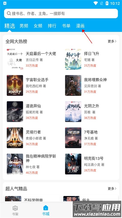 1. 切换至漫画频道,热门作品会显示在首页推荐位;