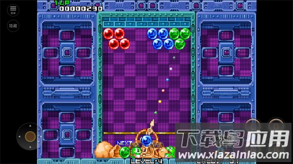 2、使用左侧虚拟摇杆调整发射轨迹,右侧按钮切换泡泡颜色;