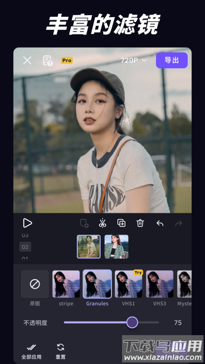 2、海量滤镜库:包含上百种风格各异的视频滤镜;