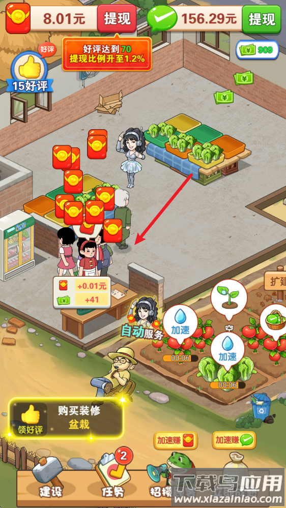 在这款轻松愉快的模拟经营游戏中,你将体验从田园到市场的完整经营过程。拥有一片专属农田,种植各种新鲜蔬菜瓜果,为自家菜市场提供充足货源;通过精心打理摊位,满足顾客多样化的订单需求,赚取丰厚收益。随着等级提升,还能解锁更多作物品种和经营玩法,感受逐步扩大的田园商业版图。游戏操作简单易上手,画风清新治愈,适合闲暇时放松心情。喜欢田园生活和经营乐趣的朋友不妨下载试试。