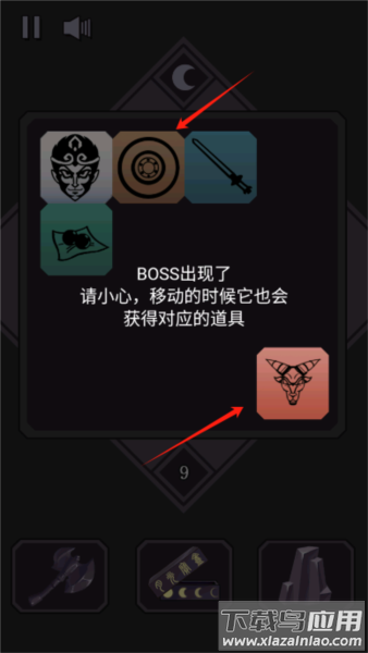 3、底部工具栏包含防御盾牌、攻击法宝和恢复丹药三种道具;
