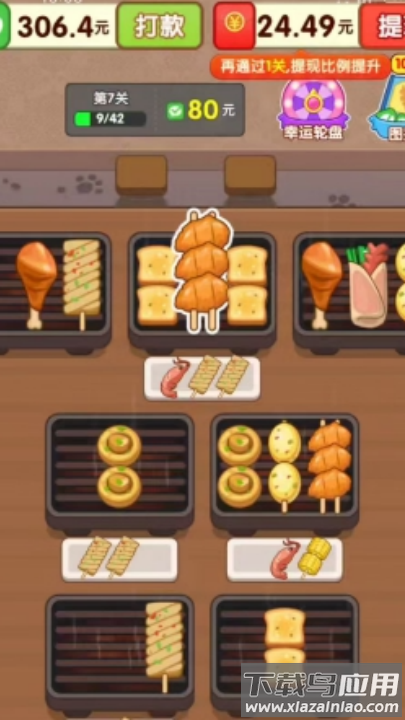 1、点击选中烤串后滑动屏幕,将其移动到目标烤架的空位处;