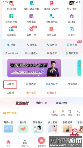 1、首先打开微脉水印相机软件,进入到首页中后我们找到【水印库】点击;