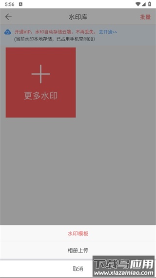 3、接着在页面下方会弹出【水印模版、相册上传】亮相选项;