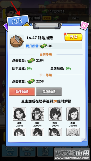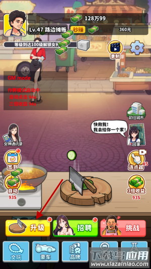 1、打开游戏主界面,点击左下角升级按钮进入功能菜单;
