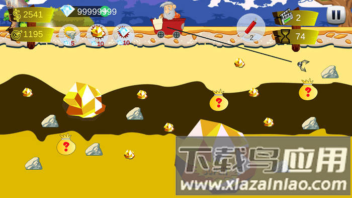 2. 玩家需控制矿工在规定时间内抓取地底的金矿与宝物,达成每关目标金额即可过关;