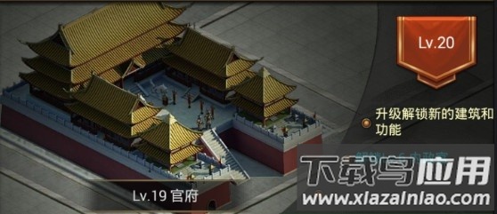 官府制约其他建筑等级上限,每5级角色等级可提升一次;升级可解锁内政官、铁匠等功能,应优先保证其进度。