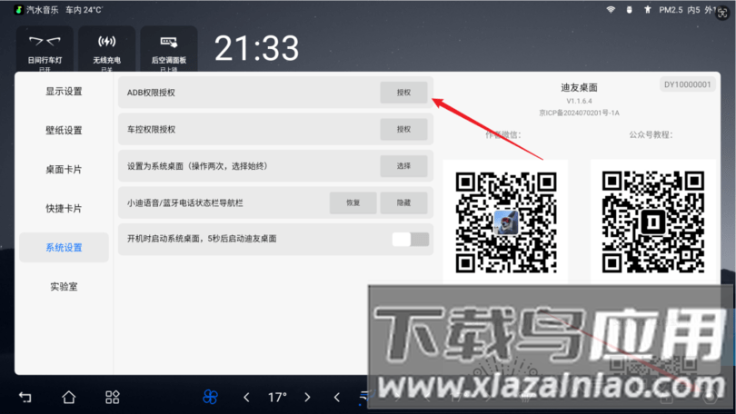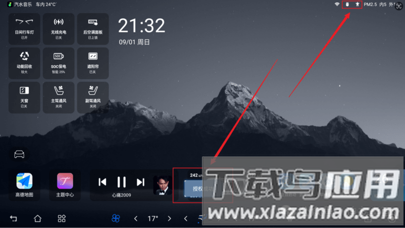 4、ADB授权成功后,进行车控服务授权;等待几秒提示成功,此时导航栏空调、胎压等信息应正常显示;