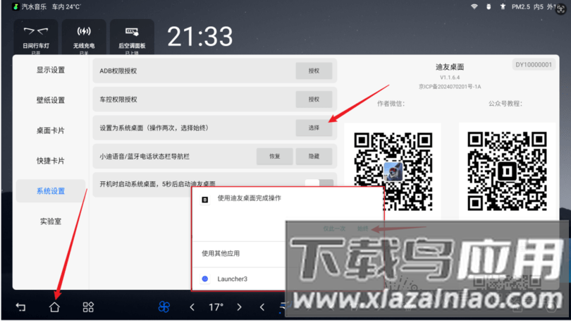 5、设置迪友桌面为系统默认桌面;在弹窗中选择“始终”,再点击主页图标确认生效;