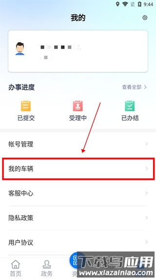 1、下载并登录运证通app,进入“我的”页面,选择“我的车辆”;
