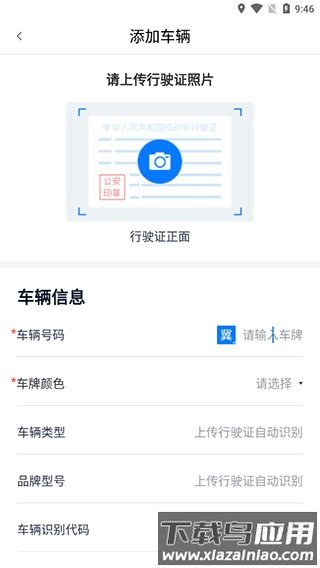 3、上传车辆行驶证照片,填写相关信息,提交即可完成添加;