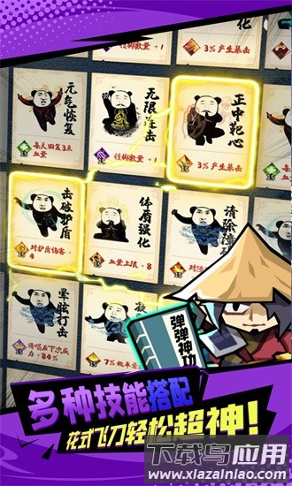 这是一款竖版弹射闯关游戏,采用Q版武侠风格,玩家将扮演初入江湖的小侠客,通过瞄准飞刀弹道对敌人发起猛烈攻击,一路击败各类BOSS,成长为真正的武林高手。操作简单,单指即可完成全部战斗。