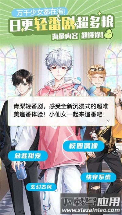 这是一款面向女性用户的全新创作平台,以番剧形式呈现,更贴合Z世代轻阅读习惯。平台拥有大量原耽小说和纯爱故事,用户粘性高,是一个友好和谐的新型创作社区。题材覆盖广泛,包括架空、都市、青春、校园、古代、穿越、田园等多种类型。