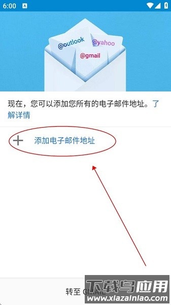1.打开应用,选择“添加邮件地址”;