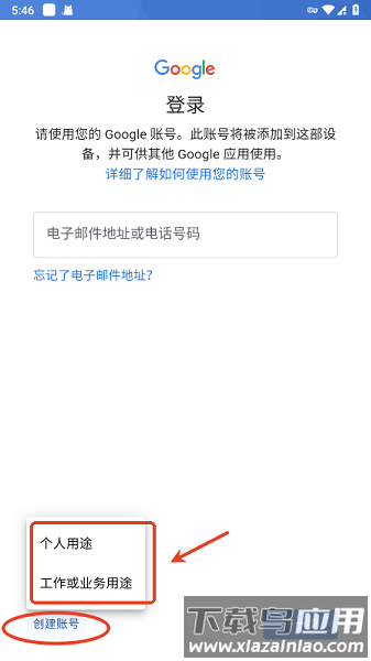3.点击“创建账号”,选择用途(个人或业务);