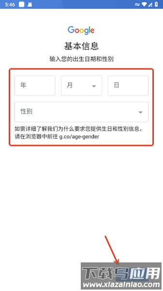 5.填写出生日期与性别,继续下一步;