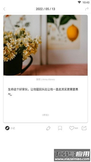 1、打开应用,首页将展示用户分享的短篇小记,可随意浏览或开始撰写自己的内容;
