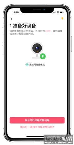 2. 将摄像机通电,待红绿灯交替闪烁时,点击设备界面右上角“+”扫描机身的二维码;