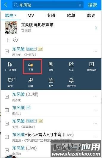 2. 点击歌曲更多操作选项;