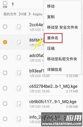 9. 长按文件并选择重命名;