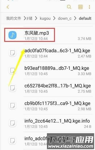 8. 通过文件管理器进入Kugou→down_c→default目录,找到最大文件;