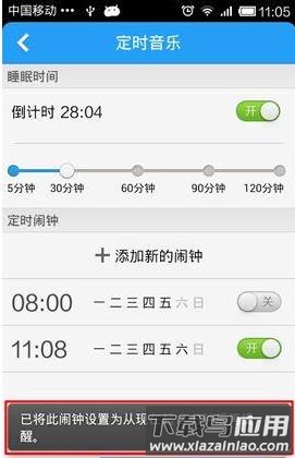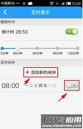 2. 开启睡眠倒计时并调整自动关闭时间;