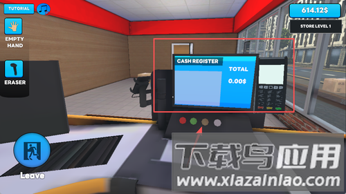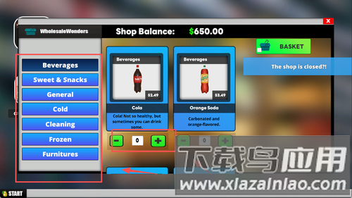 2、界面左侧为商品管理区,右侧是收银与顾客动线,可通过拖放操作摆放货物;