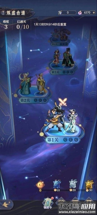 炼虚合道设多个难度章节,每章含10个关卡。通关可获得奖励,满星通关可领取星级宝箱;累计30星则下期难度提升,奖励更丰厚。