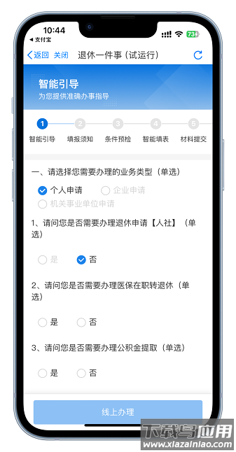 4、依据智能引导选择个人情形,完成后点击线上办理;
